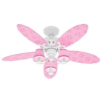 This fan/light combo is cute as can be. I put it in my grandchild's playroom at my house and she loves it. Very quiet and ever so sweet. Blades are flowered on one side and plain pink on the other so they can be changed.